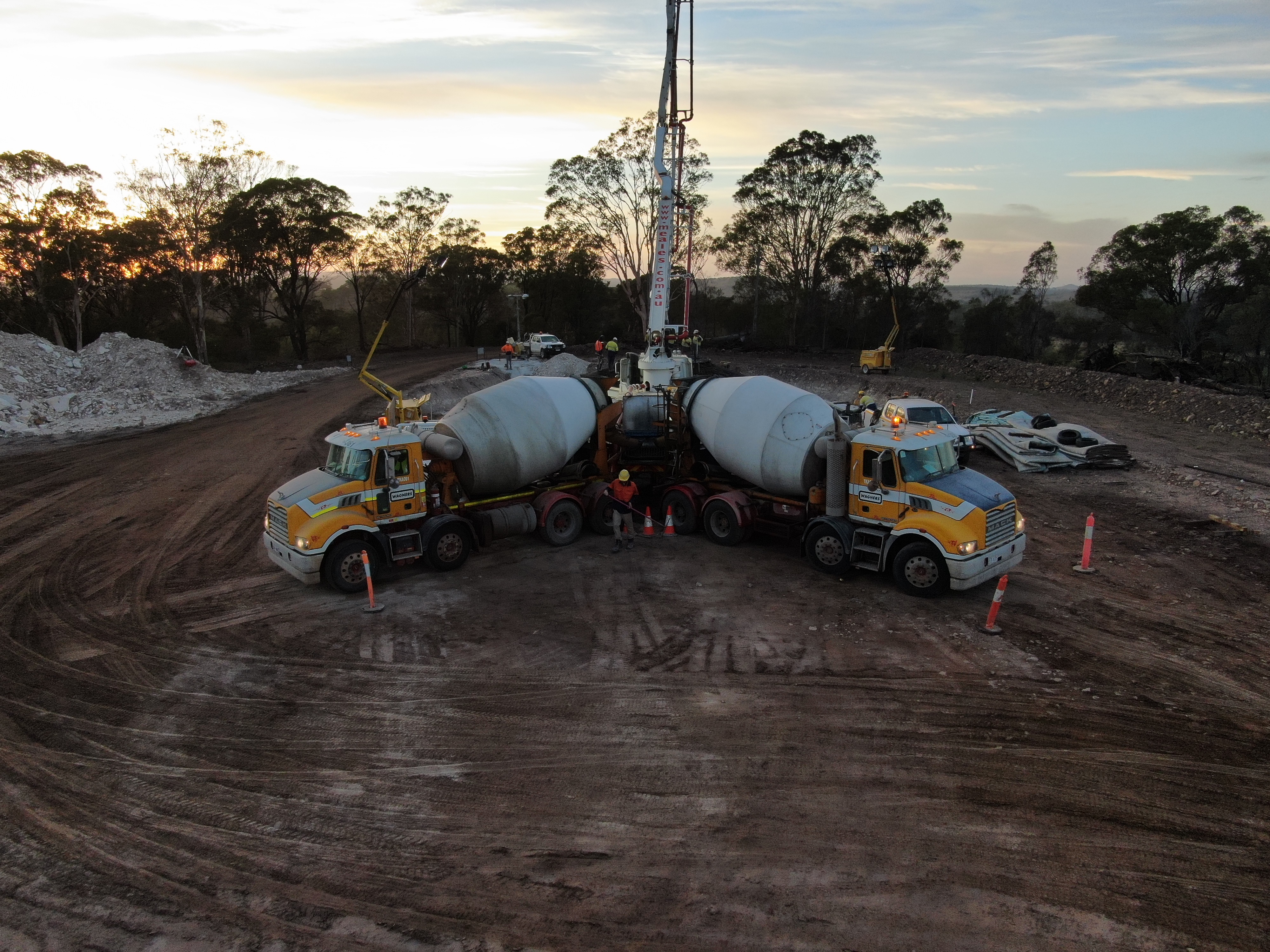 The average foundation was 610m³. We had two concrete plants on-site with a combined capacity of 160m³ per hour. The plants were moved twice during the project to reduce transport distance and delivery truck requirements.