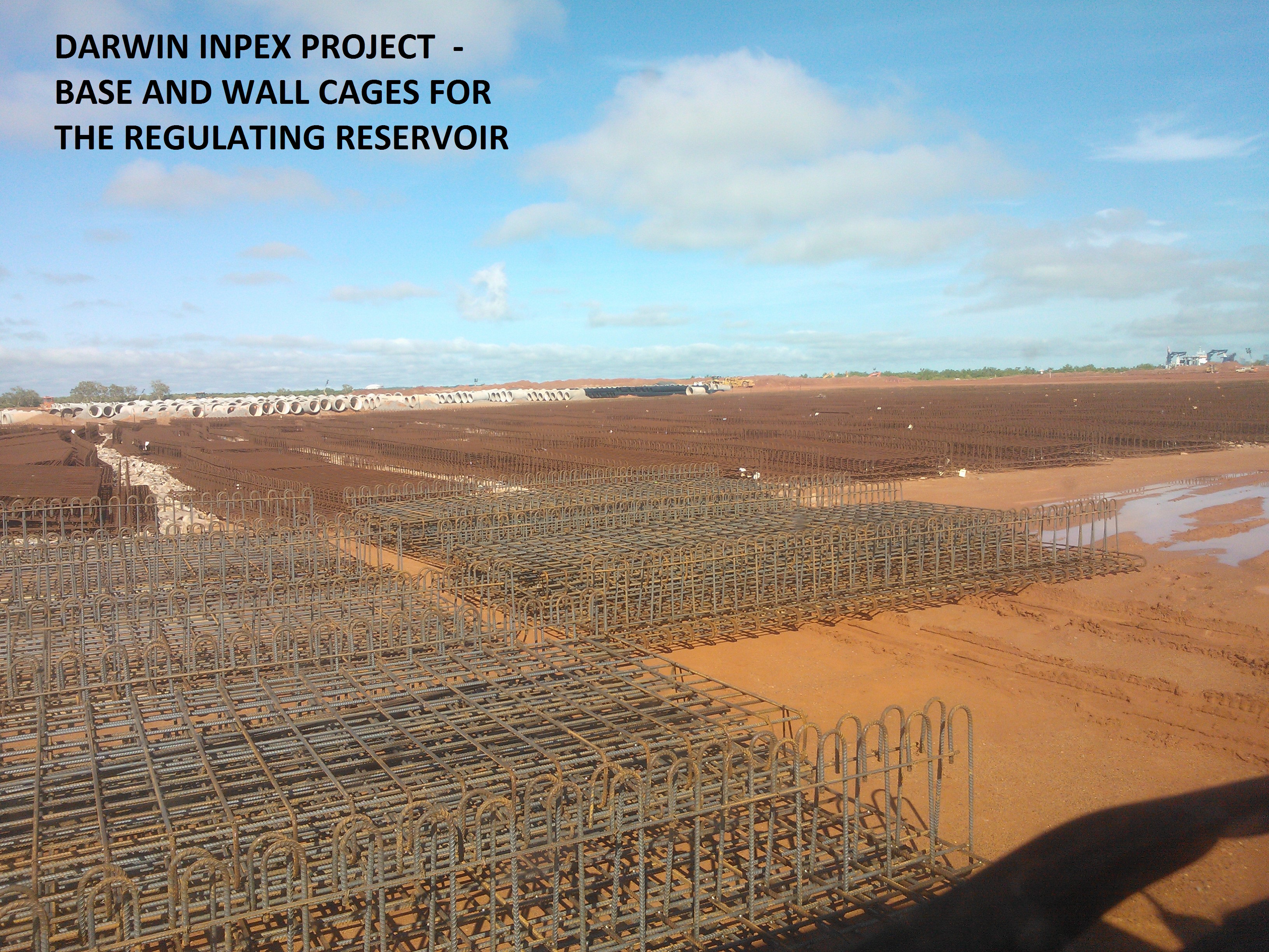 10,500 m³ of concrete was used to build the drain. The reservoir drain collects runoff rain water from across the site and allowing sediment to settle prior to release into Darwin harbour.
