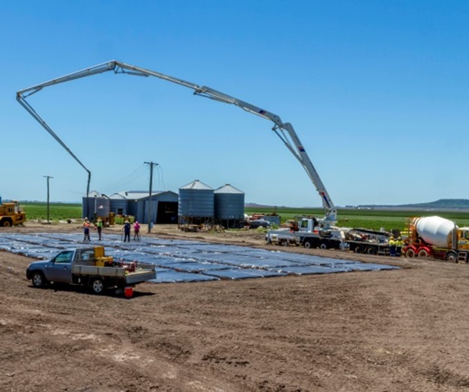 A prominent Bongeen grain and cotton farmer continued his long standing business relationship with Wagners by opting for the award winning Earth Friendly Concrete (EFC) to construct footings for several new grain silo’s. EFC contains no ordinary Portland cement which greatly reduces the carbon emissions associated with standard cement based concrete. The binder in EFC is made from combining two major wastes recycled from industry, slag and fly ash, with a proprietary alkaline chemical solution which starts a geopolymer reaction that leads to the formation of a hard crystalline matrix. The resulting concrete has excellent structural performance and far greater resistance to common durability issues like acid and sulfate attack.