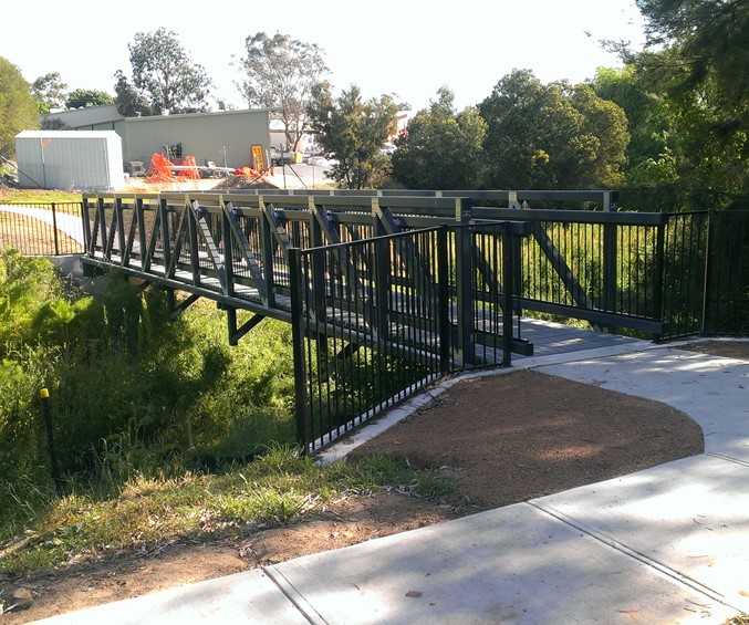 The footbridge over Buttles Creek is another one of Wagners CFT's lightspan footbridges. One advantage of this particular footbridge is that it doesn't need a lot of clearance on either side of the bridge, allowing it to be close to trees that need to be protected or even allowing another bridge to be alongside it.