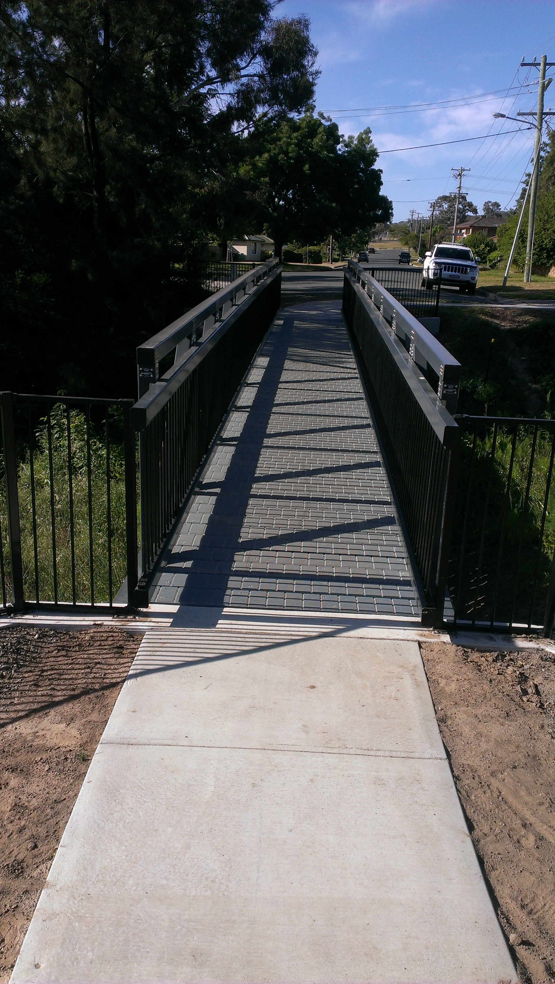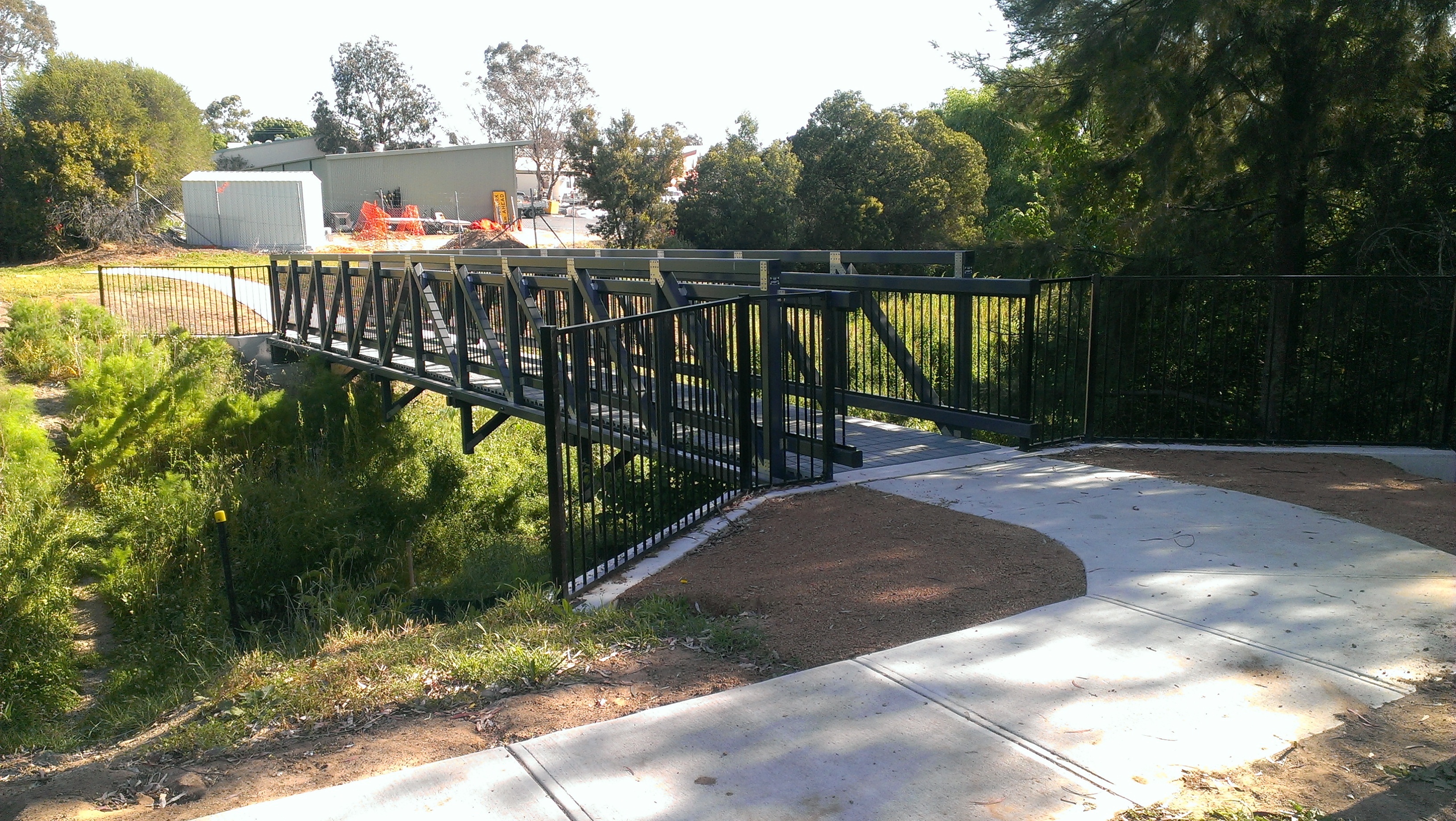 The footbridge over Buttles Creek is another one of Wagners CFT's lightspan footbridges. One advantage of this particular footbridge is that it doesn't need a lot of clearance on either side of the bridge, allowing it to be close to trees that need to be protected or even allowing another bridge to be alongside it.