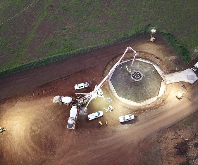 Supply and delivery of concrete for 123 wind turbine foundations.