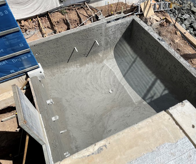 Director and Construction Manager, Ian Henry said, “For this build the client specified that we needed to use building materials with significantly reduced embodied carbon, and Earth Friendly Concrete® by Wagners is the only cement free product on the market. We have almost built the entire home from Earth Friendly Concrete®, including footings, slabs, precast walls, roof concrete panels, and now the swimming pool. We have appreciated working with Wagners as they hold themselves accountable and have worked with us to trial mixes and solve problems”.