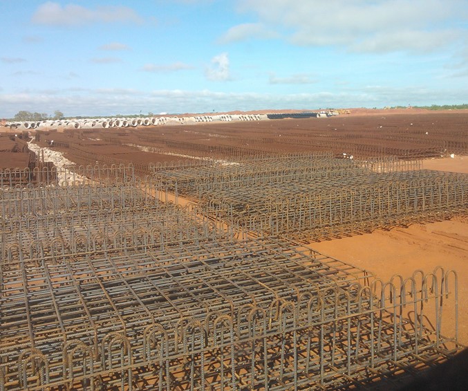 This project involved the supply 1,802 tonnes of prefabricated reinforcing cages and a 210 tonnes of other processed bar for the base and walls of the 2.1m deep - 4.8km long regulating reservoir drain that surrounds the Blaydin Point site.