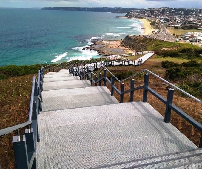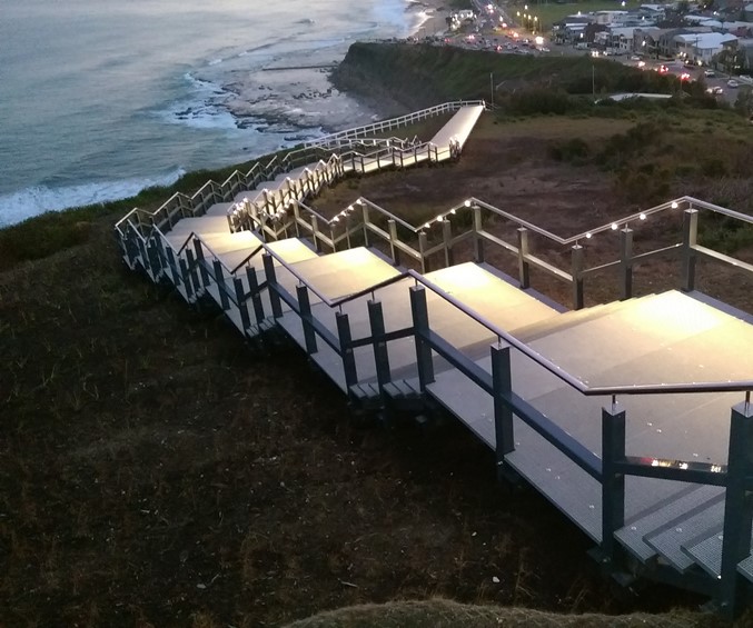 Designed by EJE Architects, Wagners & TLB Consulting this boardwalk was built to commemorate 100 years for the ANZACS. The boardwalk built by Wagners Constructions, is approximately 400 lineal metres long and sits in one of the most picturesque parts of Newcastle, NSW, and is designed with lights in the Composite Kickrails & Stainless Handrails to light up the night.