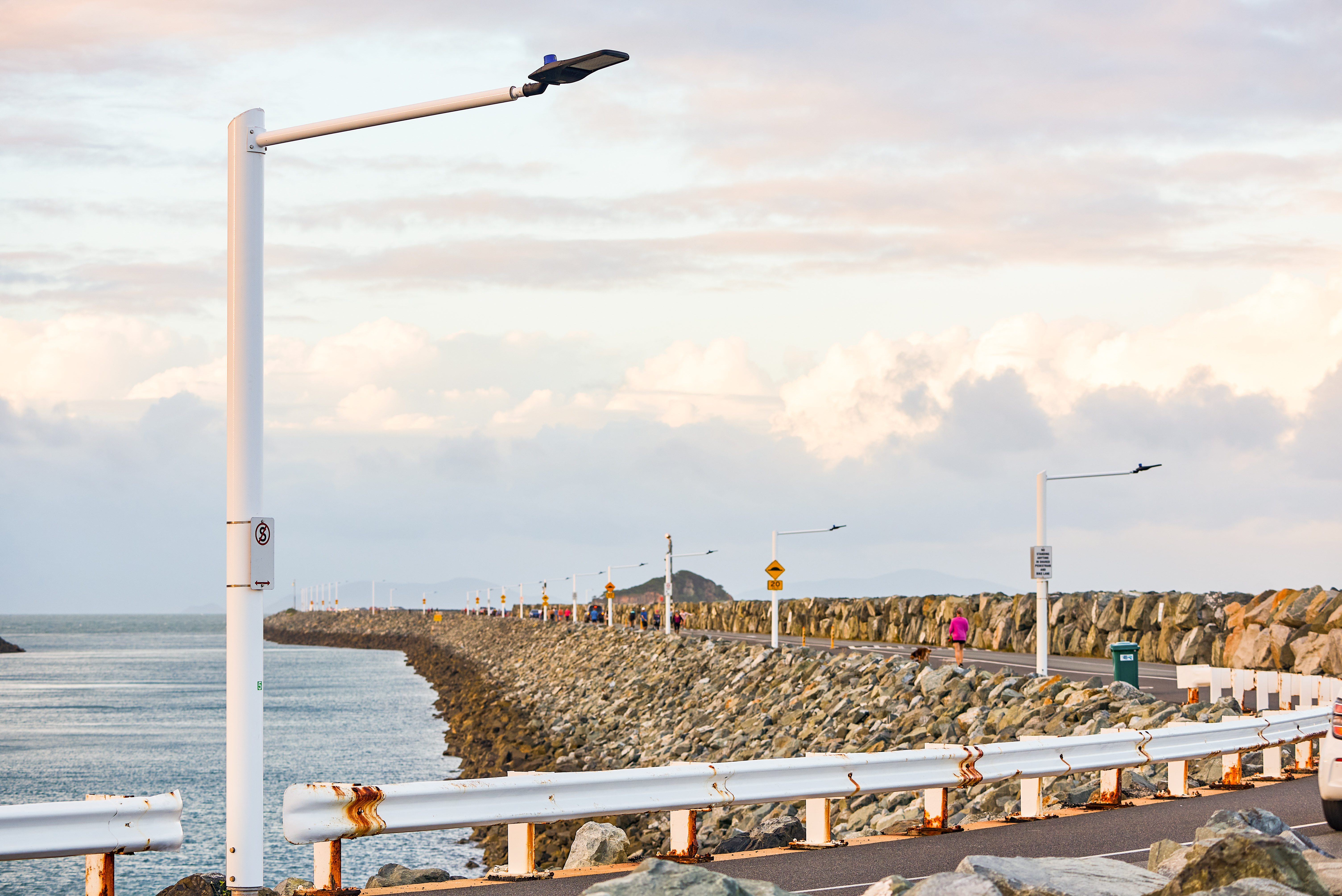 This project run by North Queensland Bulk Ports Corporation, saw the replacement of 29 painted galvanised steel light poles at southern Breakwater. The steel light poles were installed roughly 15 years ago and as they were exposed to saltwater spray and the elements every day, they had deteriorated significantly. Our corrosion resistant light poles were selected as an economical replacement. We were able to supply North Queensland Bulk Ports Corporation with a custom design and solution to suit their needs, with poles fabricated to exact heights and outreach that could withstand cyclone winds. The light poles we supplied were two different sizes: 17 x 5m with a 2m outreach and 12 x 8m with a 2m outreach.