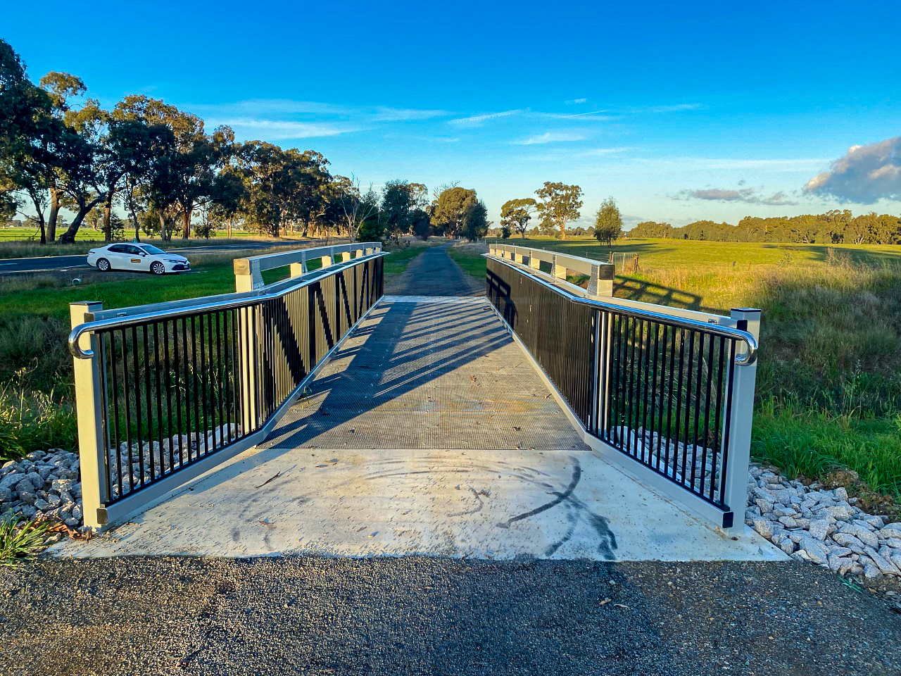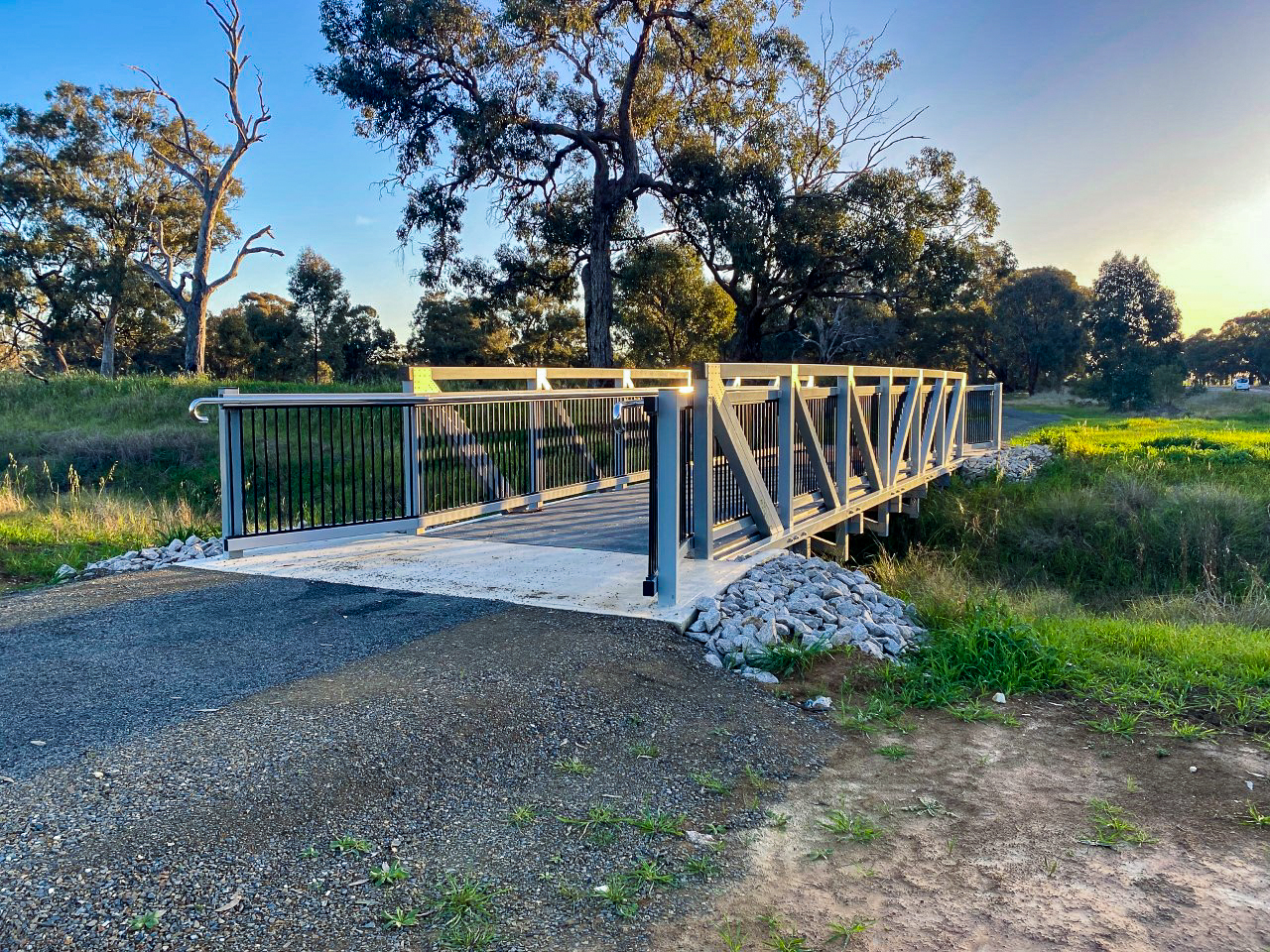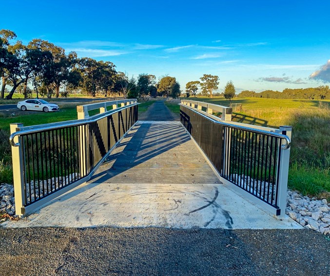 Check out the stunning Skehan's Bridge, which is part of the Lake Mulwalla Project. It is made from our innovative Composite Fibre Technologies products, so it is resistant to corrosion, lightweight yet strong, easy to install and maintain. The bridge is across the road from Corowa on Spring Drive near Skehans Lane it was installed by Gradian Projects for Federation Council.