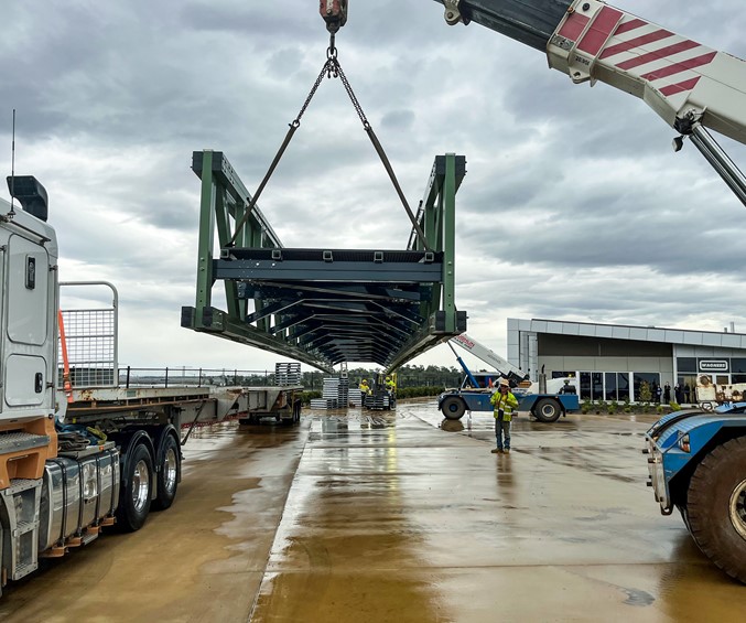 Another excellent Composite Fibre Technologies (CFT) project leaving our manufacturing facility, destined for Tooradin, Victoria. This 26m long and 3.5m wide bridge forms part of a 120m boardwalk made entirely from CFT and forms a crossing for pedestrians over the Tooradin Inlet. This bridge is strong, durable and will easily withstand year-round exposure to the elements thanks to the composition of our products. The contractor is Elite Crossings who is installing the structure for The City of Casey.