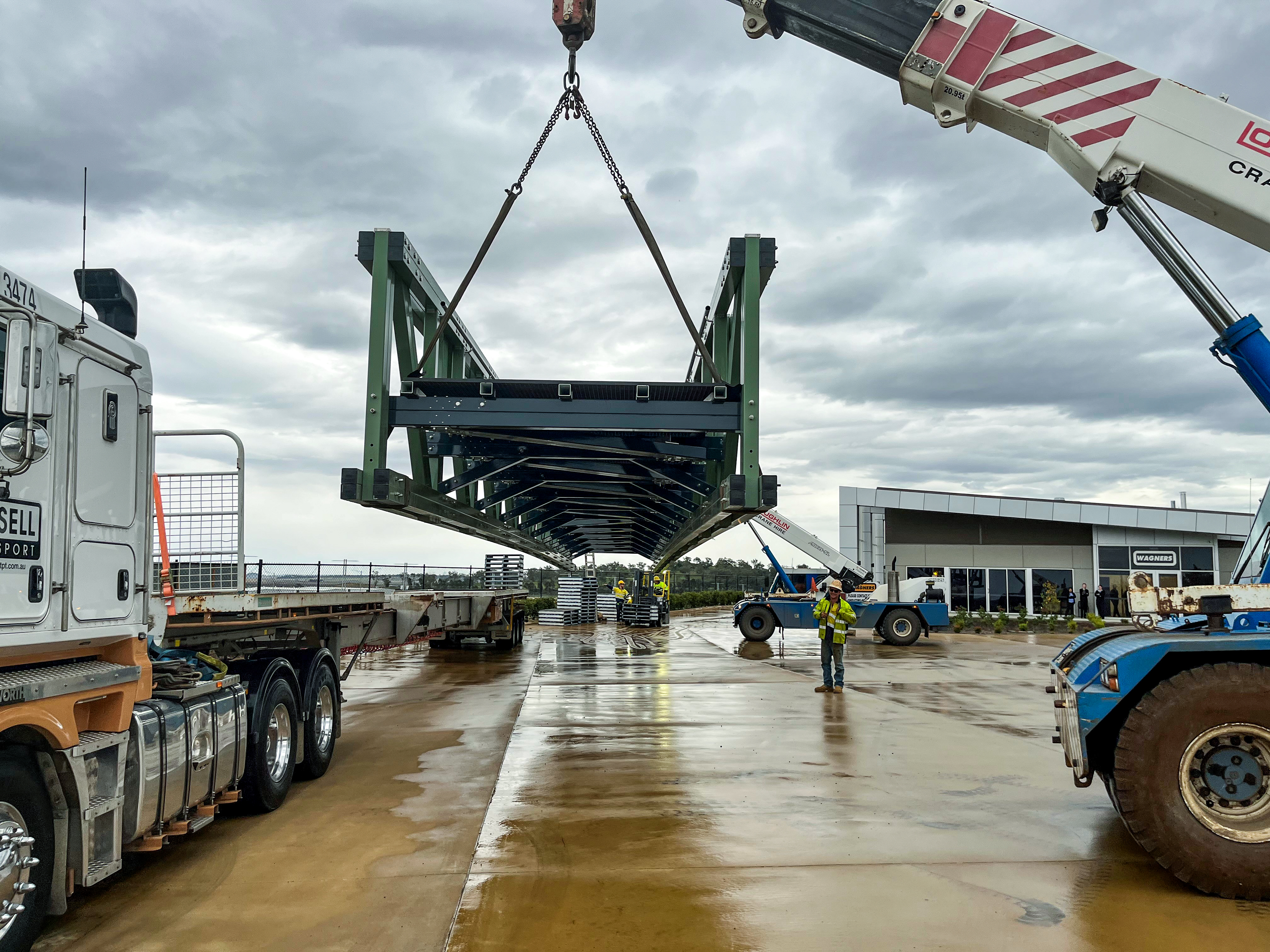 Another excellent Composite Fibre Technologies (CFT) project leaving our manufacturing facility, destined for Tooradin, Victoria. This 26m long and 3.5m wide bridge forms part of a 120m boardwalk made entirely from CFT and forms a crossing for pedestrians over the Tooradin Inlet. This bridge is strong, durable and will easily withstand year-round exposure to the elements thanks to the composition of our products. The contractor is Elite Crossings who is installing the structure for The City of Casey.