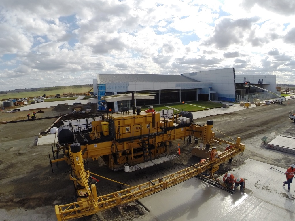 The EFC heavy duty aircraft pavements were constructed using a slip form paver machine during the 2nd half of 2014.