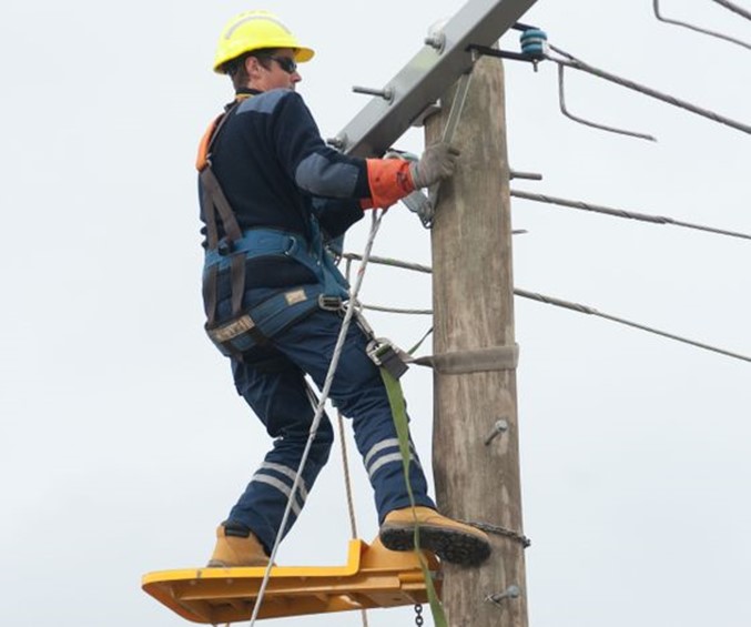 5th. Picture: ActewAGL installing LV intermediate arm on composite pole in Canberra, ACT