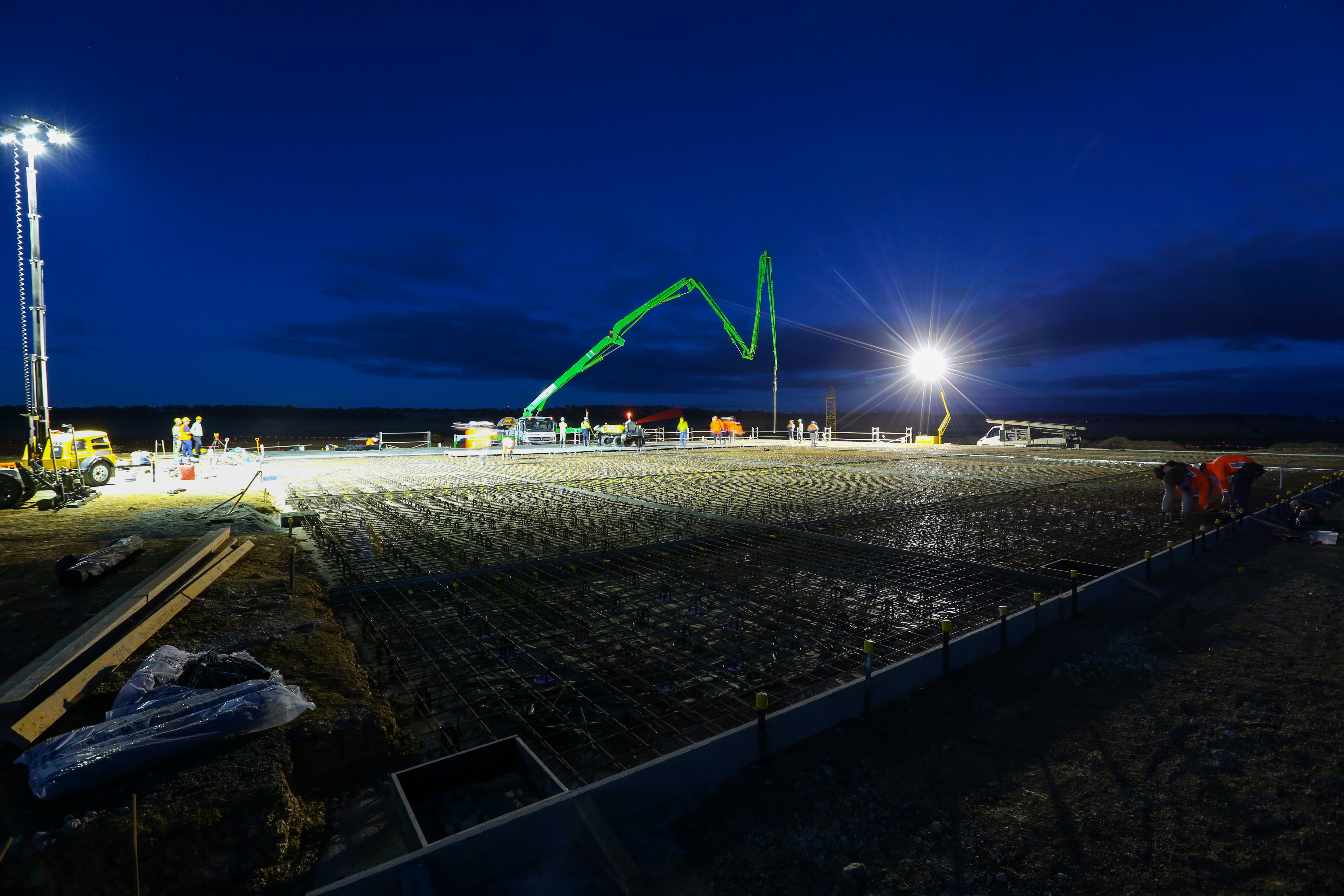 On the 19th of February 2021 Wagners achieved a milestone with Hutchinson Builders who used Earth Friendly Concrete® for what is the biggest continuous slab pour for a geopolymer concrete. Together we successfully placed 310 cubic metres. The slab forms the foundation for the Wellcamp Regional Distribution and Trade Centre cold room facility that will be used for storing fresh produce before export.