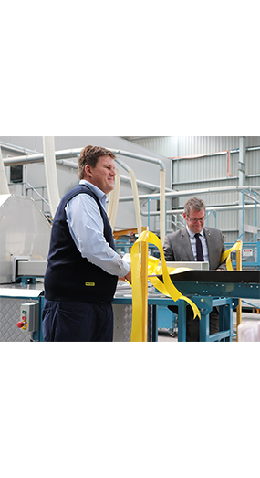 During the announcement we took the opportunity to commission our fourth pultrusion machine with a ribbon cutting by Dr McVeigh. This machine will see the ability for increased output of product to international markets.