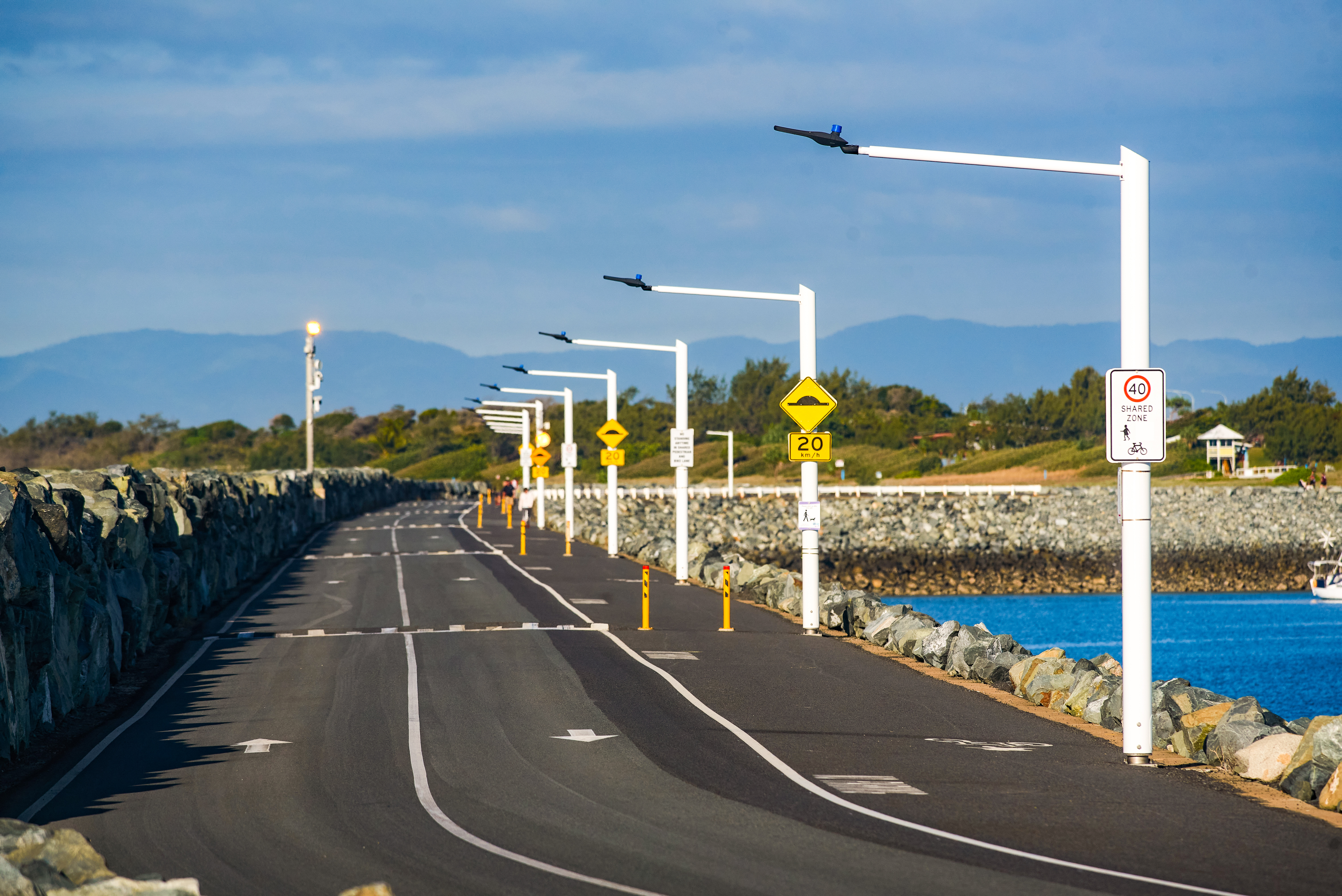This project run by North Queensland Bulk Ports Corporation, saw the replacement of 29 painted galvanised steel light poles at southern Breakwater. The steel light poles were installed roughly 15 years ago and as they were exposed to saltwater spray and the elements every day, they had deteriorated significantly. Our corrosion resistant light poles were selected as an economical replacement. We were able to supply North Queensland Bulk Ports Corporation with a custom design and solution to suit their needs, with poles fabricated to exact heights and outreach that could withstand cyclone winds. The light poles we supplied were two different sizes: 17 x 5m with a 2m outreach and 12 x 8m with a 2m outreach.